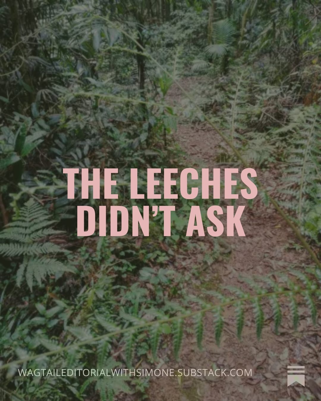 Like the leeches who stubbornly clung to the insides of my socks (I won’t share the bloody imagery with you here). And my pondering about consent to share others’ experiences. It reminded me of a question commonly asked by new writers when they first consider working with a book coach or editor: “If I share my ideas with you… Will they still belong to me?”